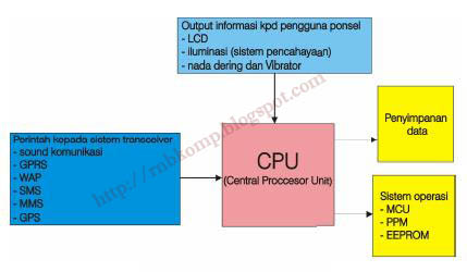 Semua perintah yang pengguna lakukan akan diterima oleh CPUdan kemudian CPUakan mengolah semua perintah tersebut.CPU dapat memproses semua perintah input berdasarkan data operating system yang terdapat pada ic flash.IC Flash akan menyimpan data input tersebut bila diperintahkan oleh CPU,sedangkan IC RAM akan menerima data dari CPU untuk sementara.